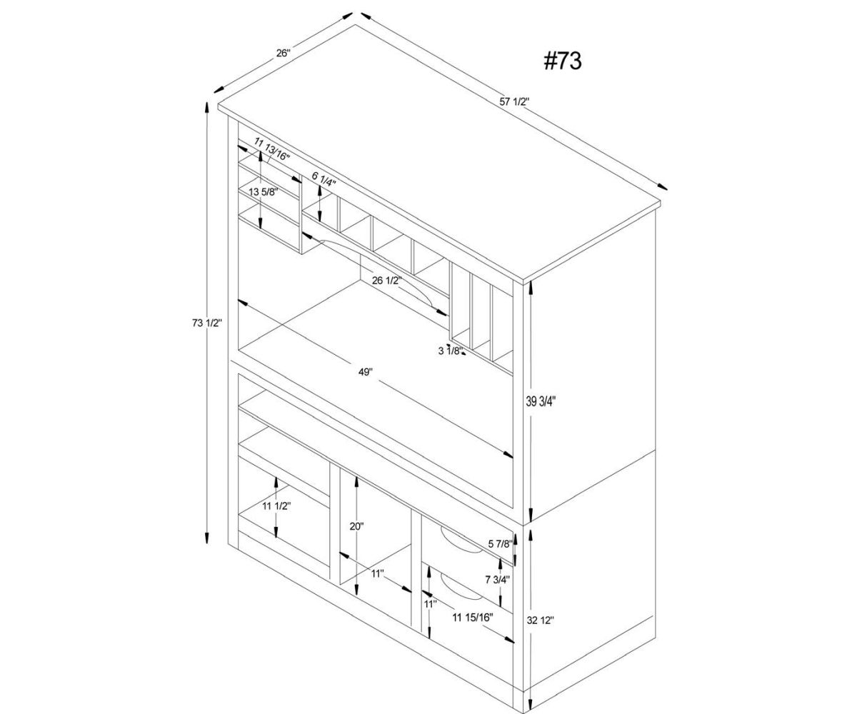 Dimensions: 57½”W x 26″D x 73½”H Monitor Opening: 26¼”W x 22¾”D x 23¾”H