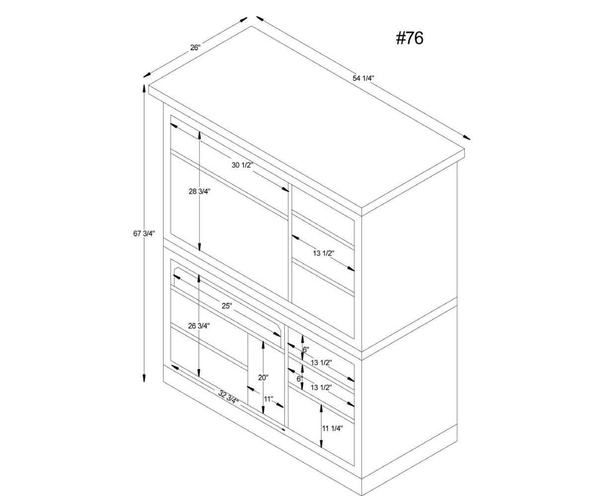 Dimensions: 54¼”W x 26″D x 67¾”H Monitor Opening: 30¼”W x 22½”D x 28½”H