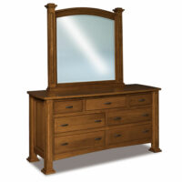 Features: • Beveled mirror • 1″ Solid wood top • 3″ Solid posts with raised panels • Arched raised panel sides detail • Dovetailed drawer boxes with raised panels • Full extension drawers slides